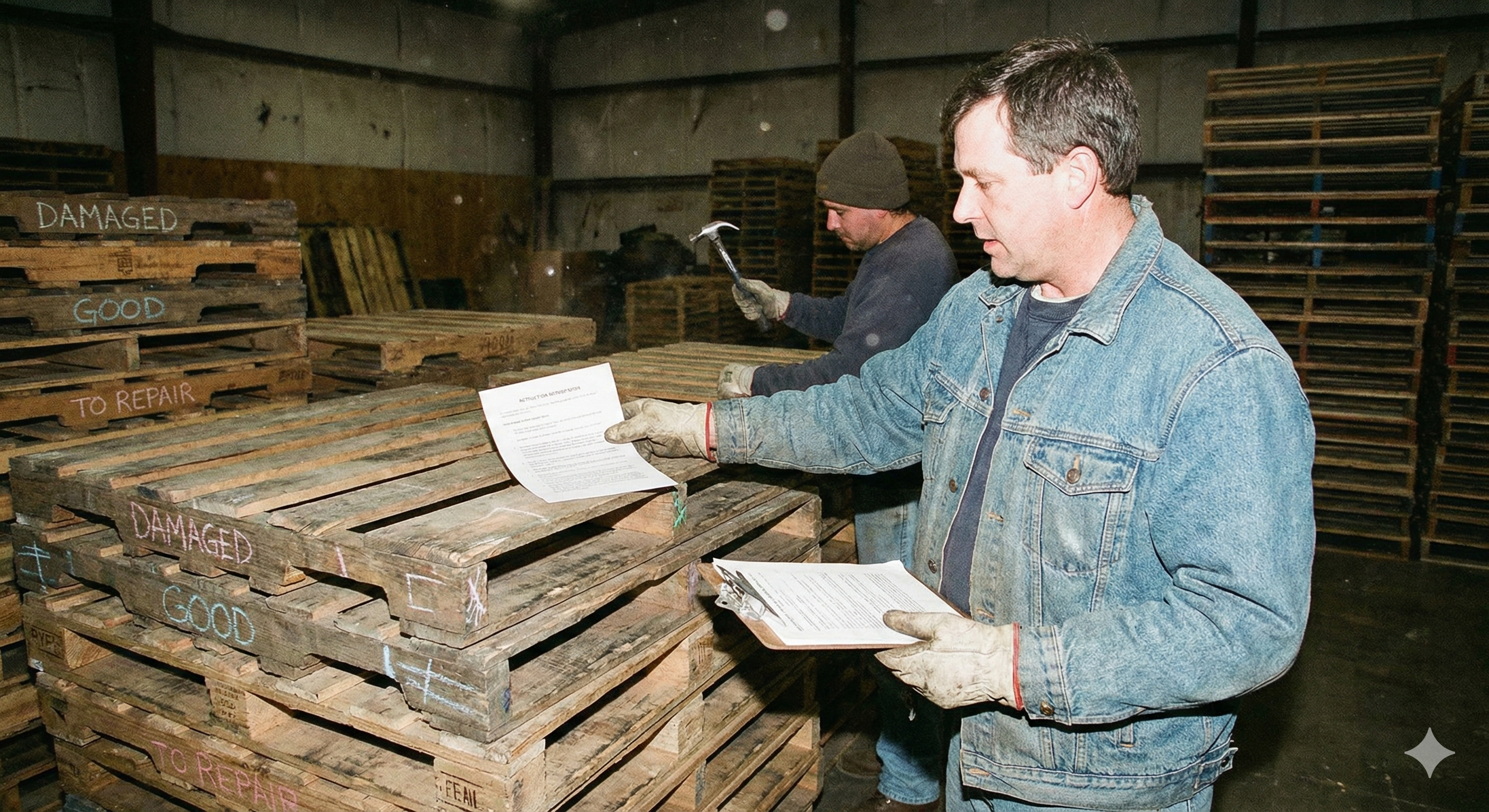 Поддоны поступают на склад партнёра, где их приводят в порядок: